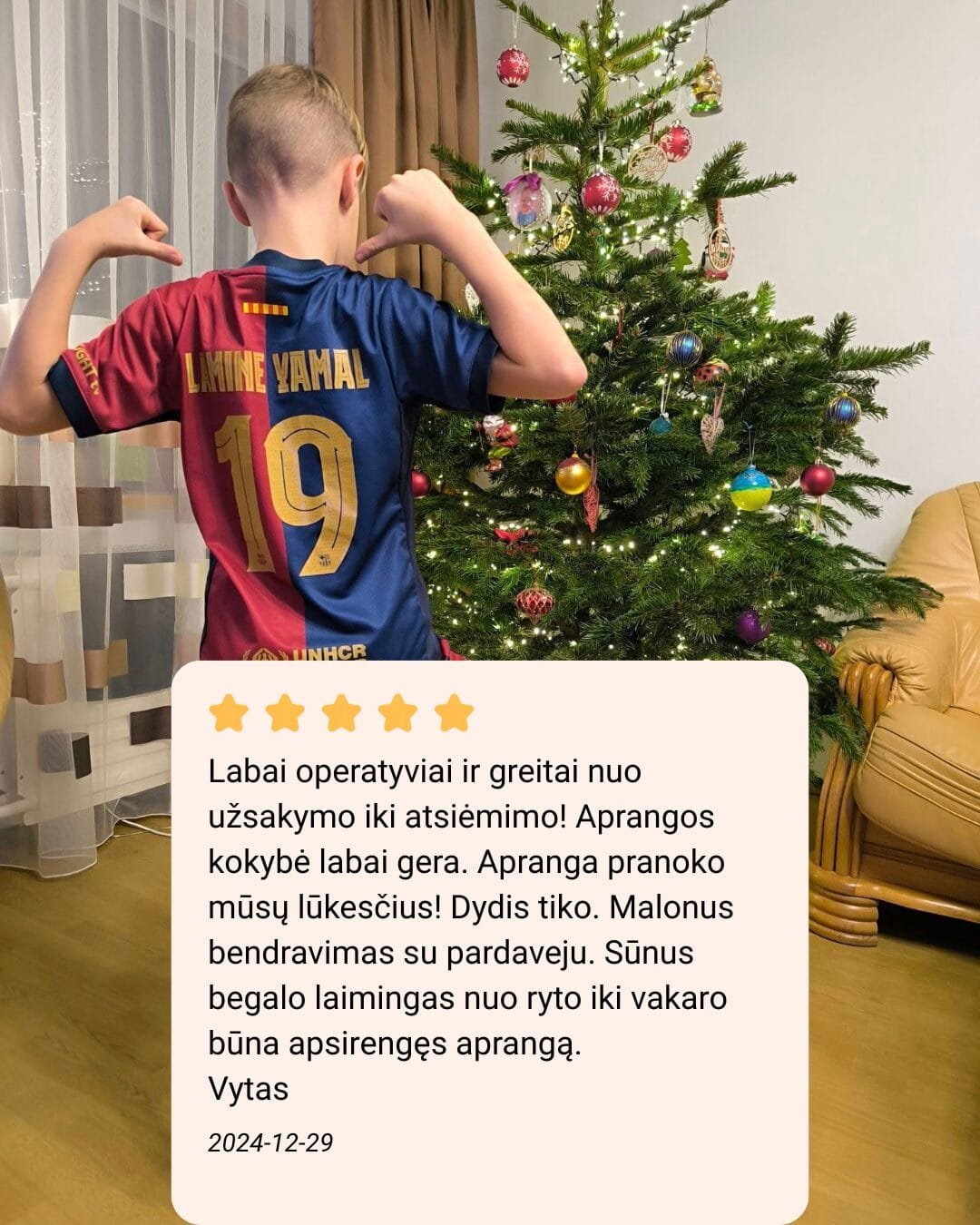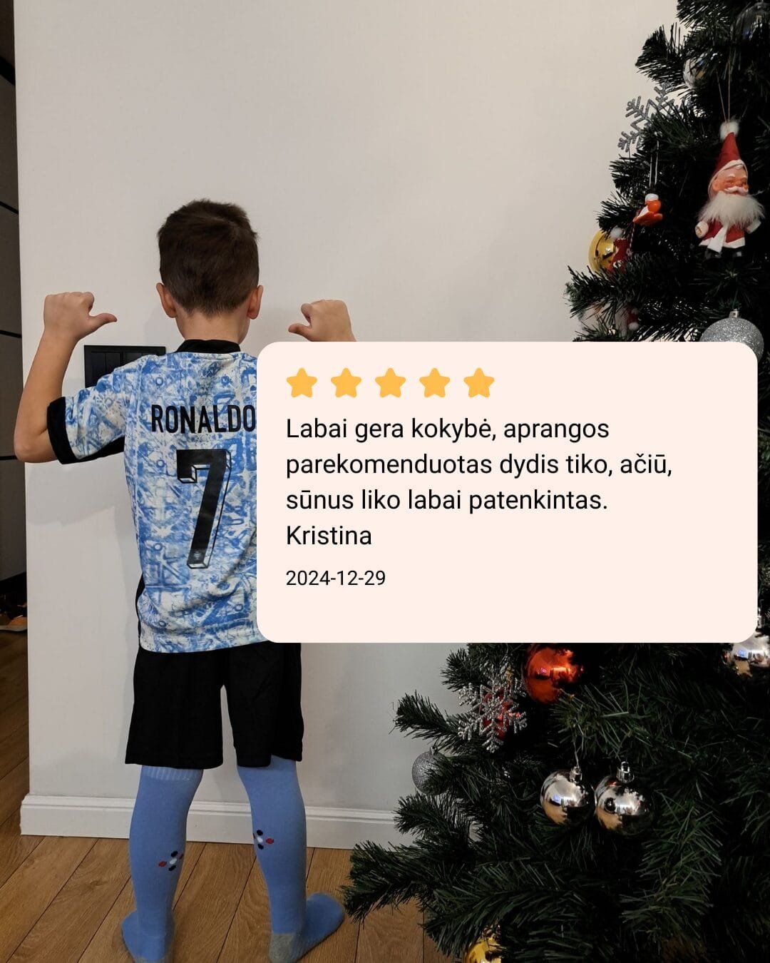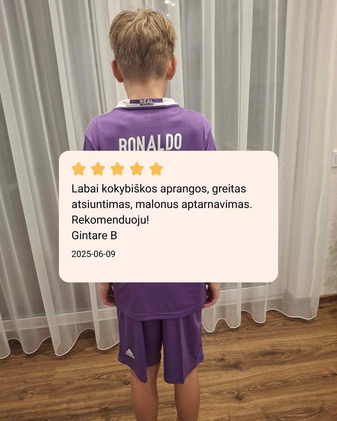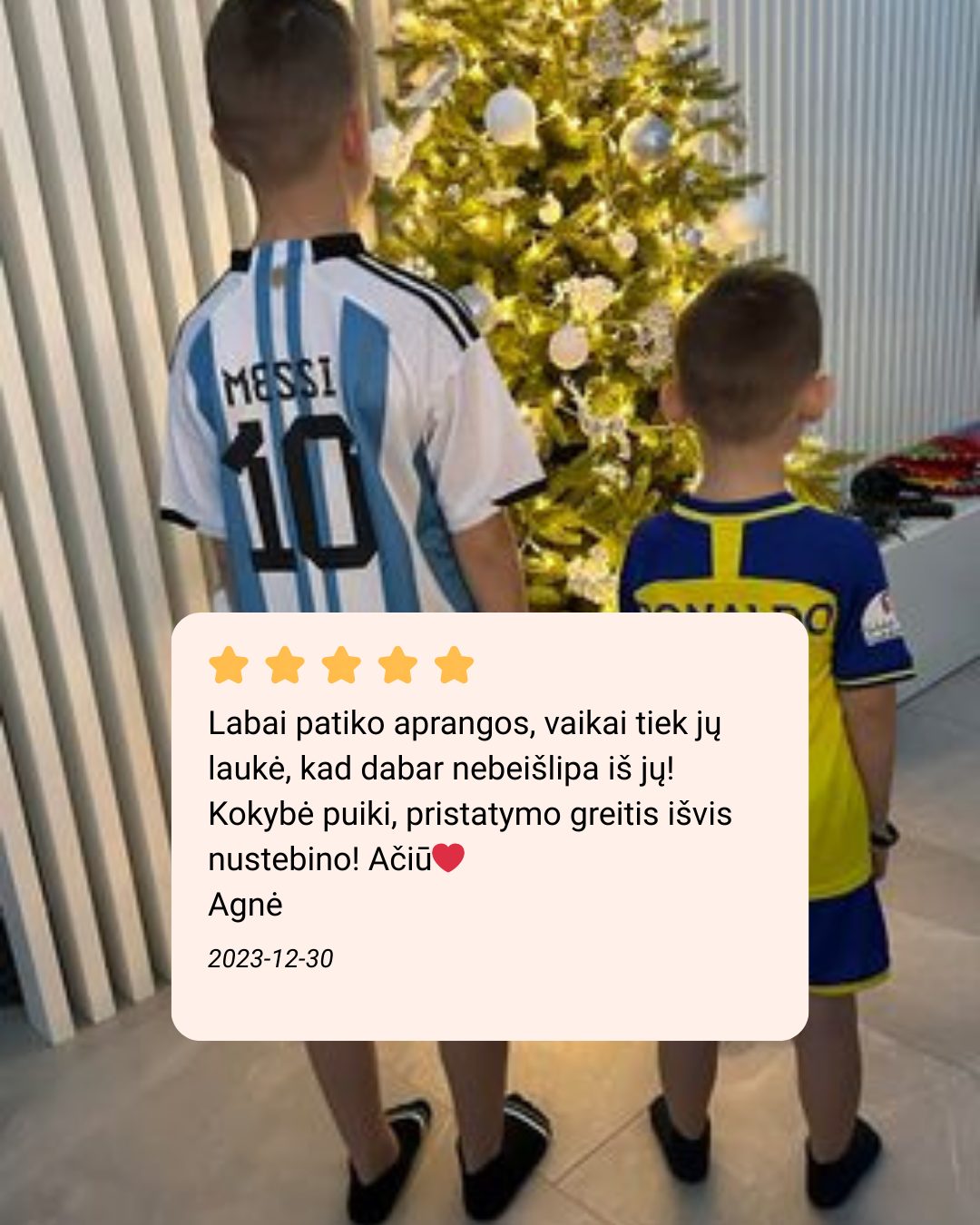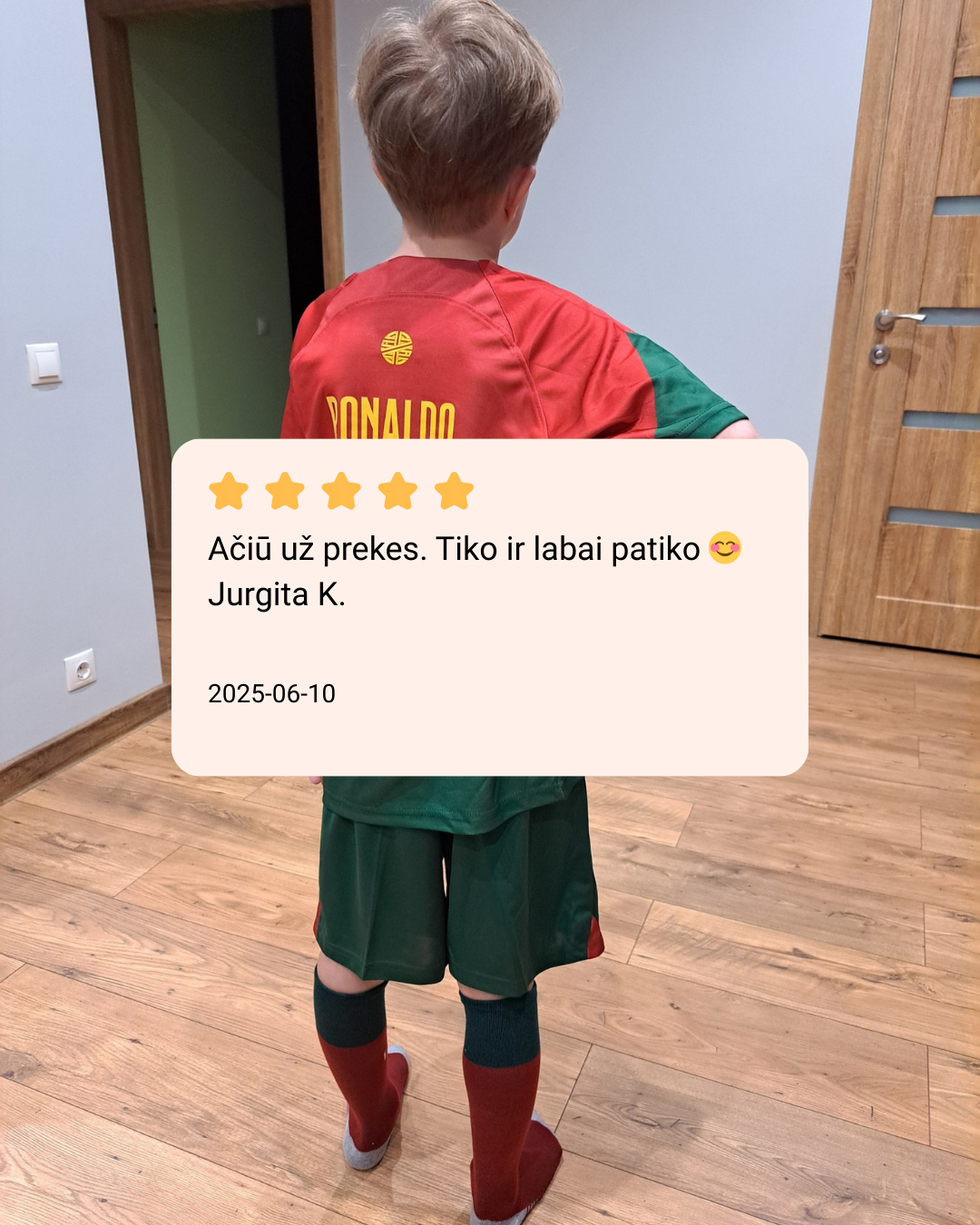 Pirkau 4 skirtingas futbolo aprangas. Aprangų kokybė labai gera. Aptarnavimas 10 iš 10. Super greitai gavome užsakymą. Gavome dovanų po guminę apyrankę. Tikrai rekomenduoju, kas ieško sau, dovanų draugui ar mažajam sporto gerbėjui! Liksite tikrai patenkinti 👌